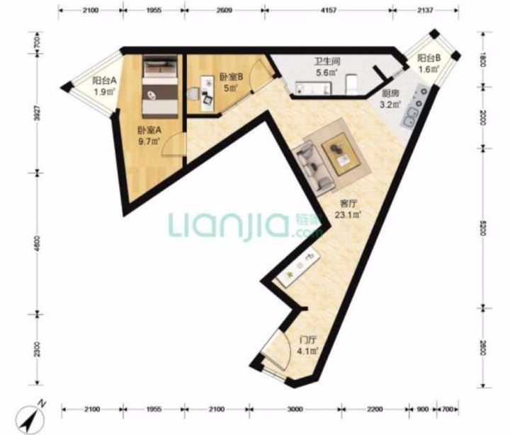 户型虽奇葩,五脏俱全。