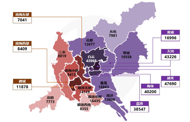 从上周的广佛各区网签价格来看,广州几个核心城区的成交价格已经达到4万/㎡以上,而佛山网签价格最高的顺德东部不过16345元/㎡,顺德北部、禅城也仅1字头均价,最受我大广州客青睐的南海中东部均价才4位数,实在是太“客气”了。