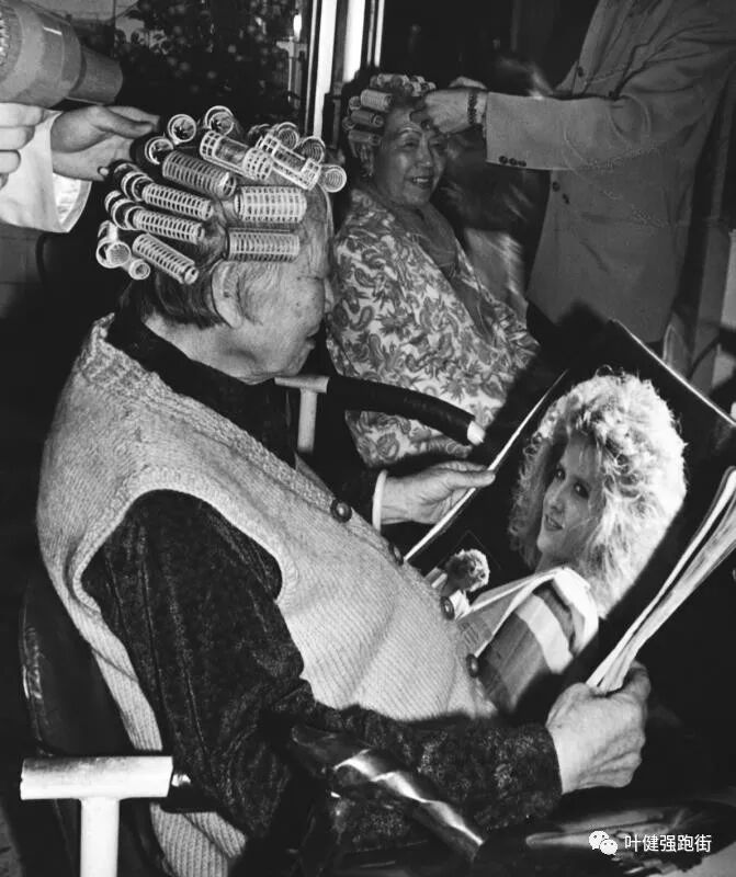 ▲ 过年啦!八十岁的阿婆电(烫)靓发过新年,师傅问:“吹个什么髮型”?哈,照版吹波!(1992年摄于广州东较场)