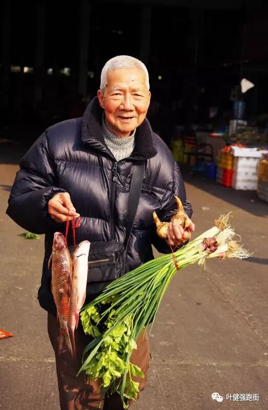昨天,叶sir和他一起逛市场,杨老笑容满面,精神抖擞。左手拿着芹菜(勤勤力力)、葱、蒜(聪明、会算),还有茨菇(新婚夫妻早生贵子),右手提着两条生猛的鲮鱼(笮年,年年有余)。