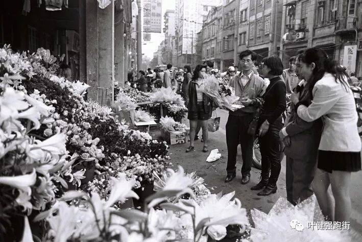 ▲ 靓花“摆通街”(1991年摄于广州大南路)