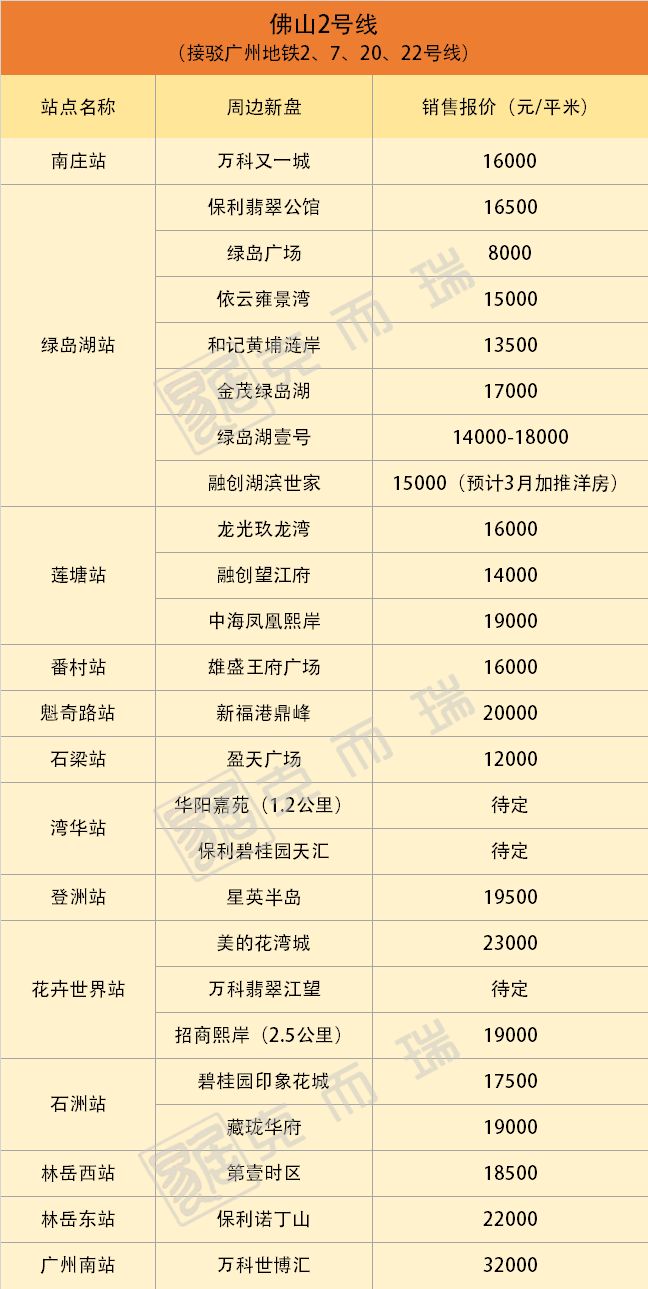 目前,沿线靠近广州的楼盘,如千灯湖站、金融高新区站等,基本已无2字头以下的楼盘。