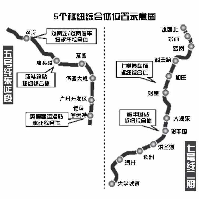 这次公开招标了5个五号线东延段和七号线二期的枢纽综合体: