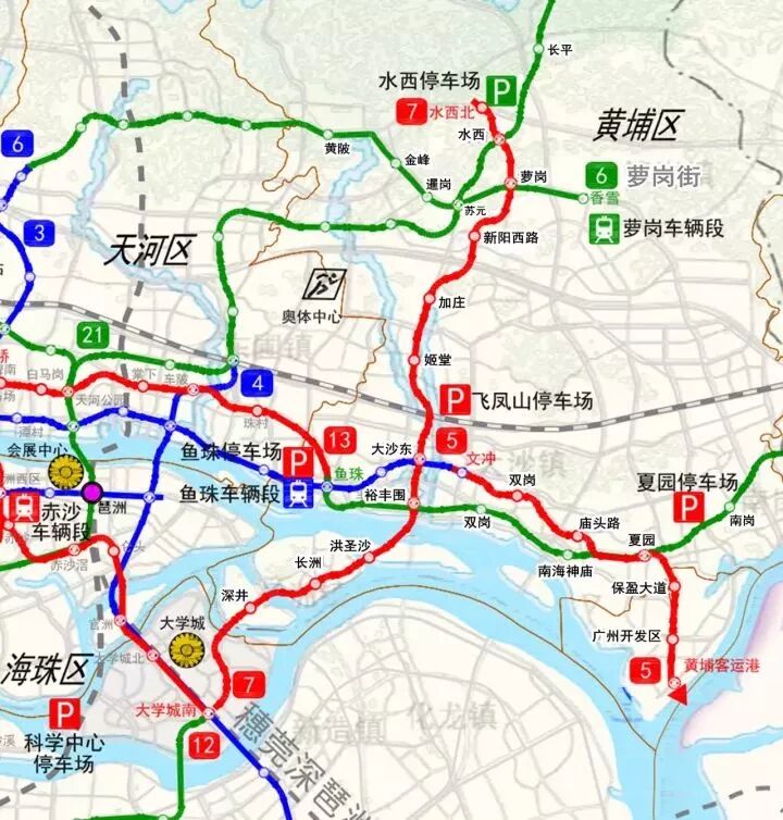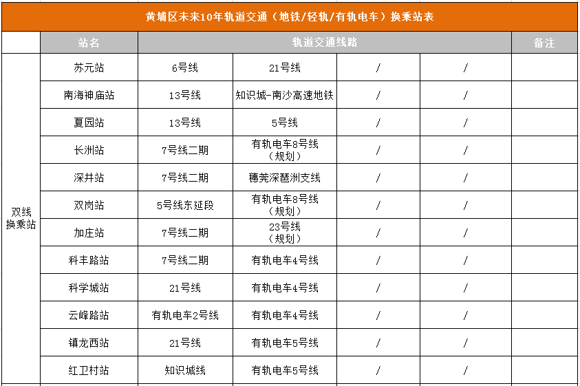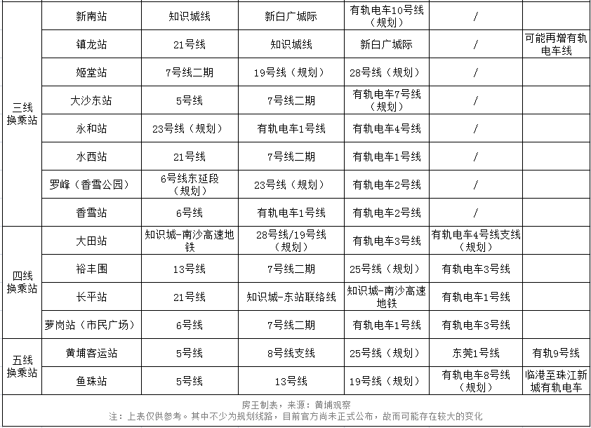 除了这几个交通枢纽,根据之前公布的地铁/有轨线路图,黄埔未来10年的换乘站多达30个!