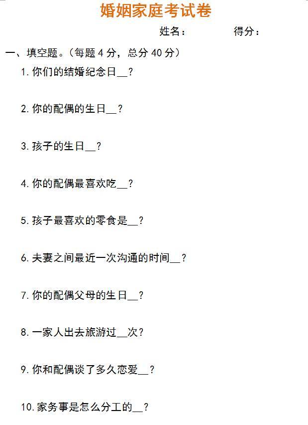 离婚试卷原版在此,你也来试试能得多少分吧?