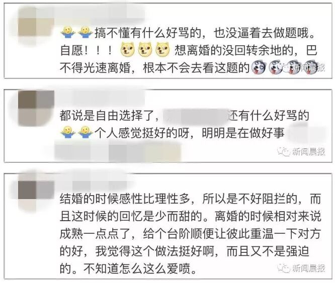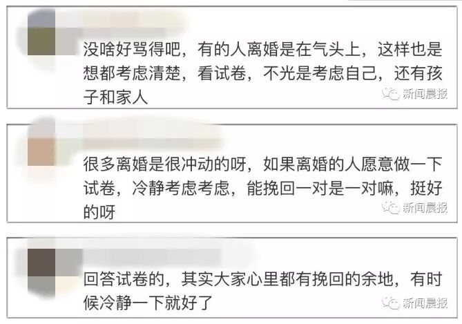 据悉,此举主要让想要离婚的夫妻通过考试,对双方的感情做一个考察,民政局认为60分以上表明还有挽回余地。