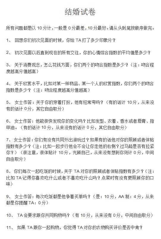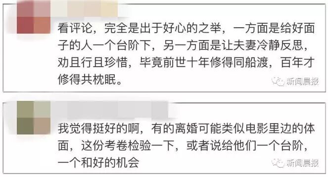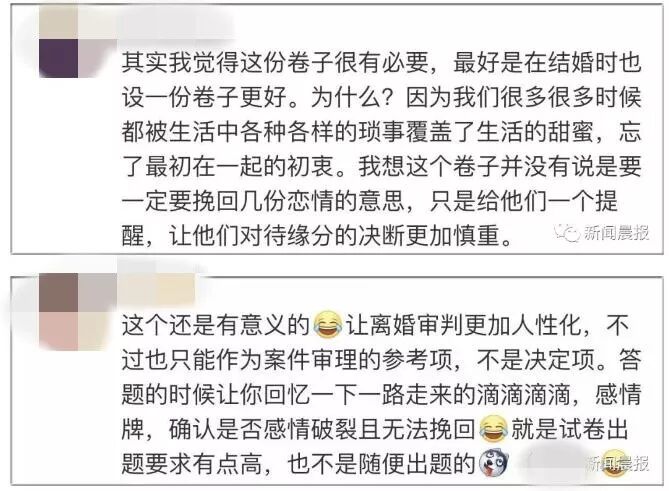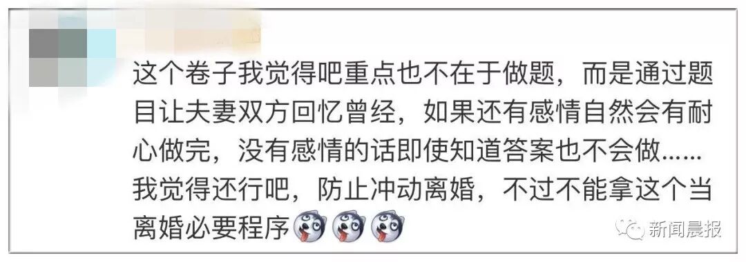 有网友觉得这份试卷挺好,可以让夫妻双方回忆婚姻的点点滴滴。
