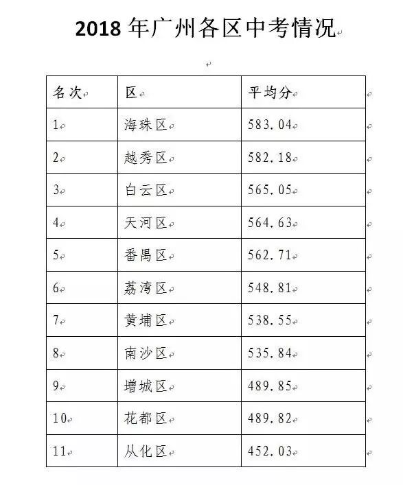 今年广州中考成绩已经公布,家长间都在流传下面这份各区的中考平均分(具体成绩以官方公布为准)。
