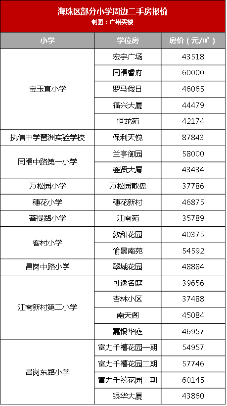 海珠区的宝岗-江南西板块汇聚了宝玉直小学、海珠区实验小学(穗花小学)、江南新村第二小学等优质小学,因此不少家长将目光投向这个区域。