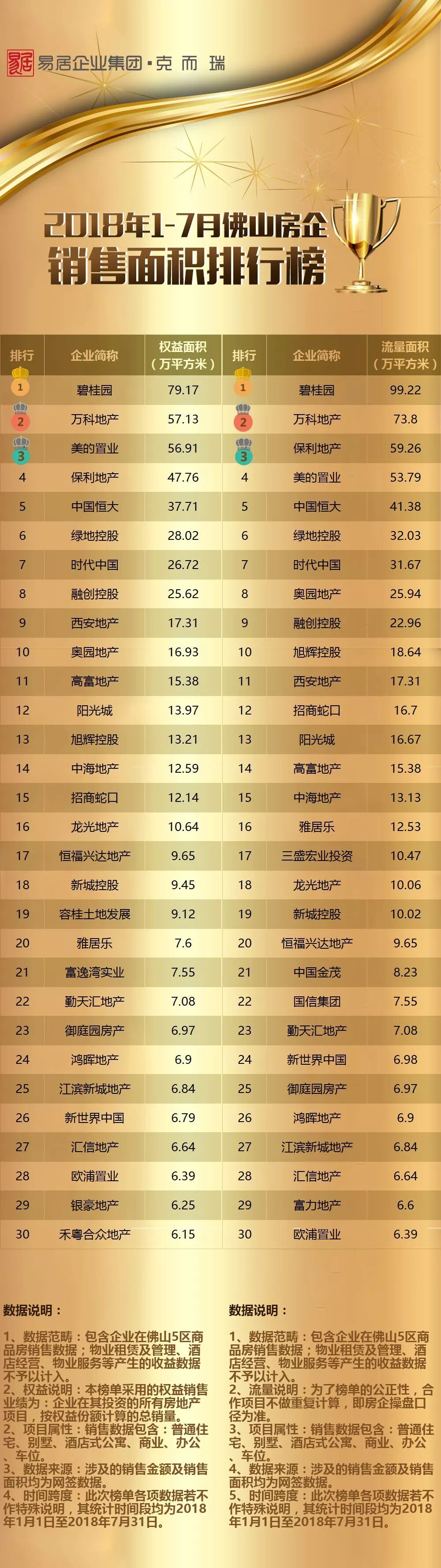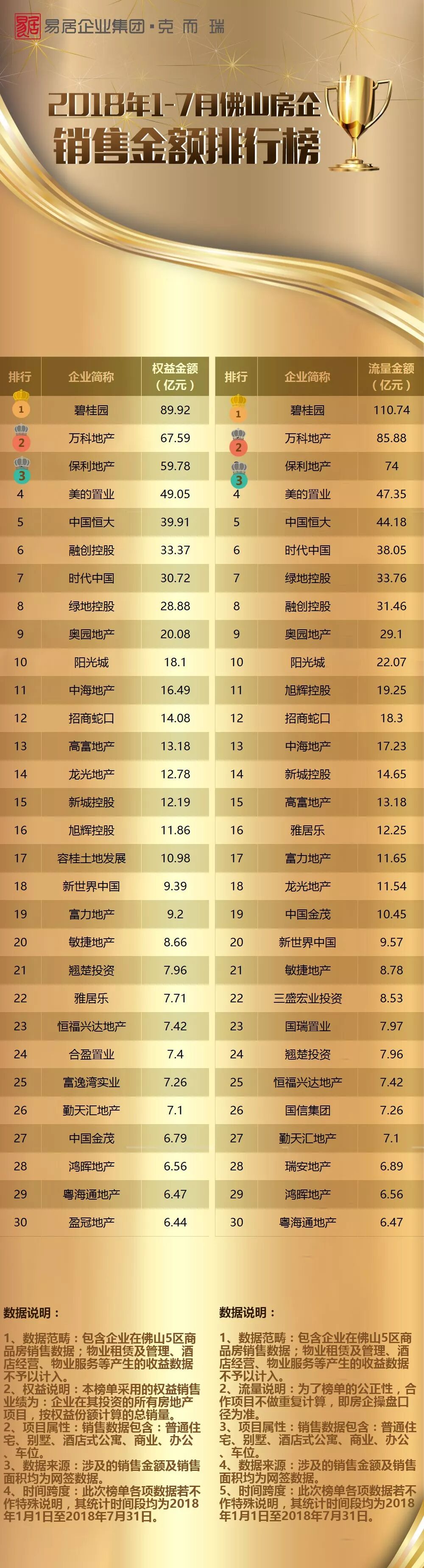(注:以下解读,主要以2018年1-7月佛山房企权益销售排行榜作为解读对象)。