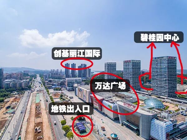 楼盘方面,目前在增城广场站附近主要有两个项目。一个是碧桂园中心,一个是创基丽江国际。