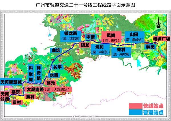 大观南路、黄村、棠东、天河公园、员村这5个位于天河区的21号线快线站点,目前也加紧施工中,但预计明年年底才通车。