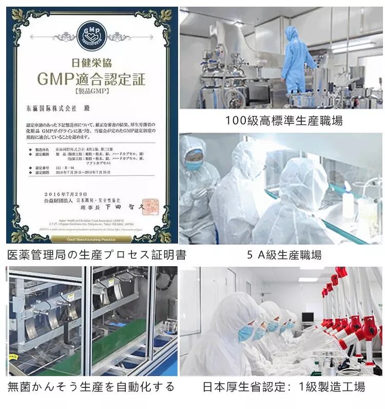 百级超洁净生产车间,5S现场管理,智能自动化设备严格控制着温度和湿度等各种相关指标,远超制药厂的卫生标准制造。被日本厚生省评定为一级制造医药生产工厂。