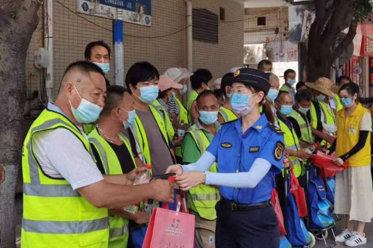 大家穿梭在辖区内各主次干道、公厕、垃圾转运站、农贸市场周边,一丝不苟地查漏补缺、清扫、整治,宣传劝导摊点规范经营,规范乱停乱放、违章搭建等各类违法现象。近来天气持续高温,面对火辣辣的太阳,大朗城管队伍充分发扬担当作为、艰苦奋斗、勇于奉献的精神,战高温、斗酷暑,以高度的责任心和使命感,奋战在第一线,努力维护优美的城市环境,迎接第二季度城市精细化管理明检做好充分准备。