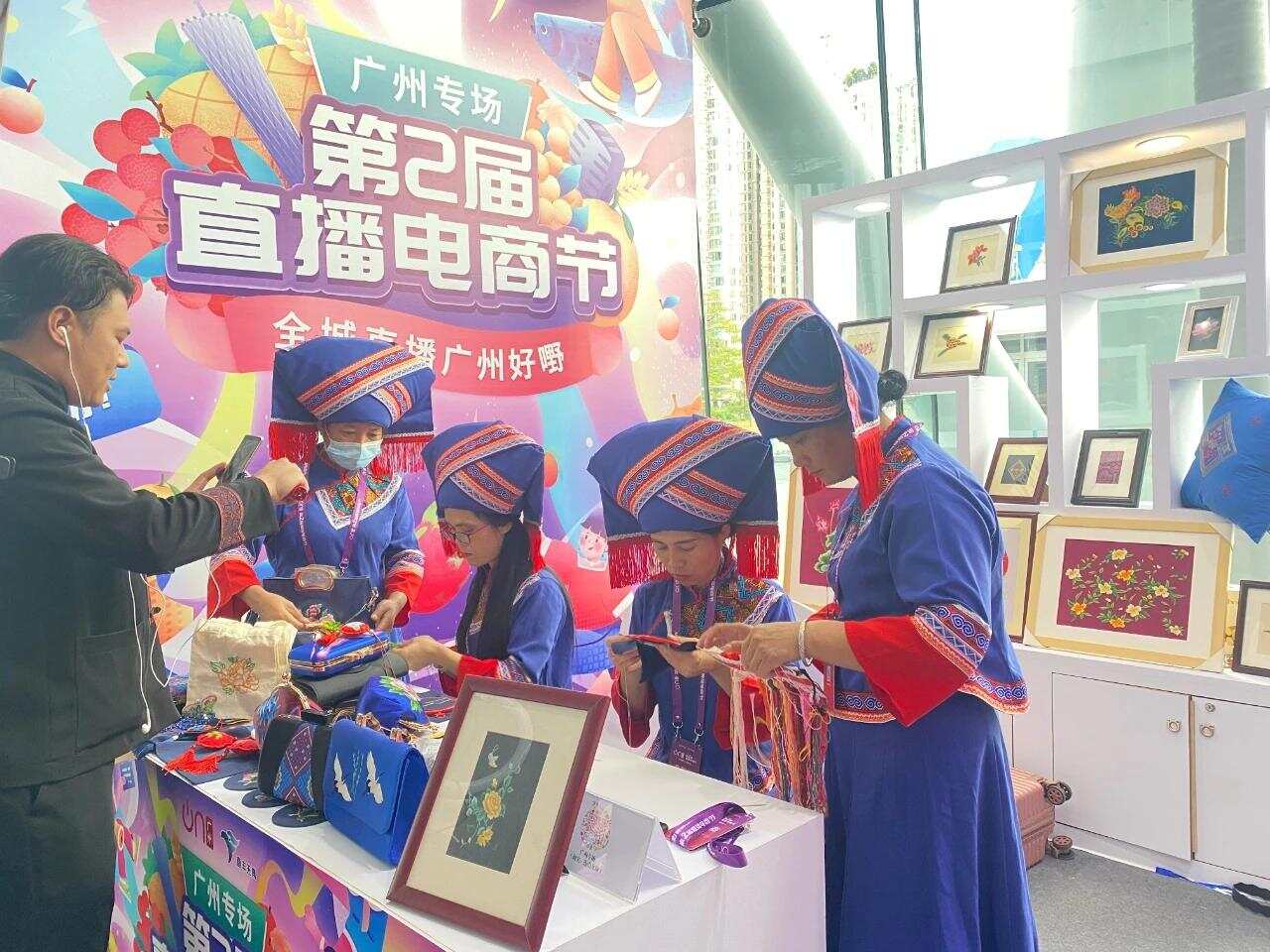 昨天下午,第二届广州电商直播节盛大开幕,全国人大代表韦庆兰携连山壮族瑶族自治县嘉田锦绣壮族绣娘现身广州塔,通过直播的方式向全网传授壮绣技艺与壮绣文化,吸引众多媒体围观采访。