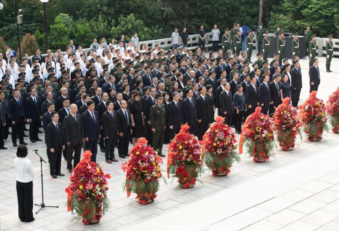 随着献花曲响起,庄严肃穆的气息萦绕园中,仪仗兵迈着整齐的礼步送置花篮,现场官兵军容严整,肃立在英模雕像群前默哀、鞠躬、敬献鲜花。