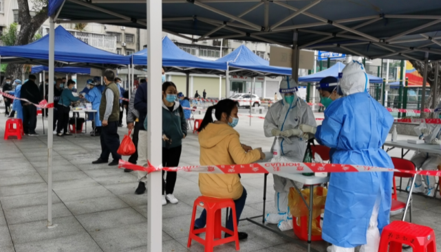 据井岸镇朝阳社区党委书记赵洁爱介绍,该检测点从凌晨1时开始搭建,多部门通力配合,在日出前即完成搭建。14日6时,社区工作人员开始陆续进驻现场,准备各类物资,确保9时准时开始核酸检测。“我们还召集了社区里的义工队和党员志愿者,大家一呼百应,1小时即到岗。”赵洁爱表示。