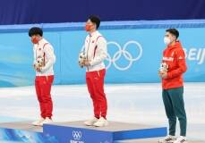 2月8日晚19时45分,北京颁奖广场迎来了今天第一组获奖运动员,他们来自短道速滑男子1000米项目。冠军任子威、亚军李文龙和季军获得者刘少昂走上领奖台。为他们颁奖的是来自乌克兰的国际奥委会委员。